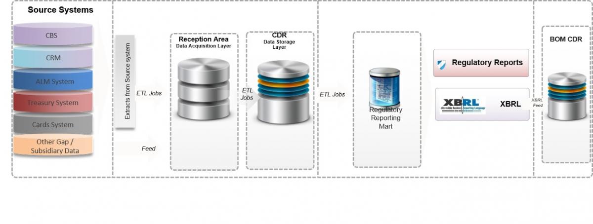 Interestingly, the primary Indian banking regulator – the Reserve Bank of India (RBI) had embarked on a similar journey during late 2010 after it published its farsighted ‘ADF Approach Paper’. Subsequently the regulator has also adopted XBRL as the medium of reporting submission. The solution architecture recommended by the regulator and subsequently adopted by banks is depicted below.